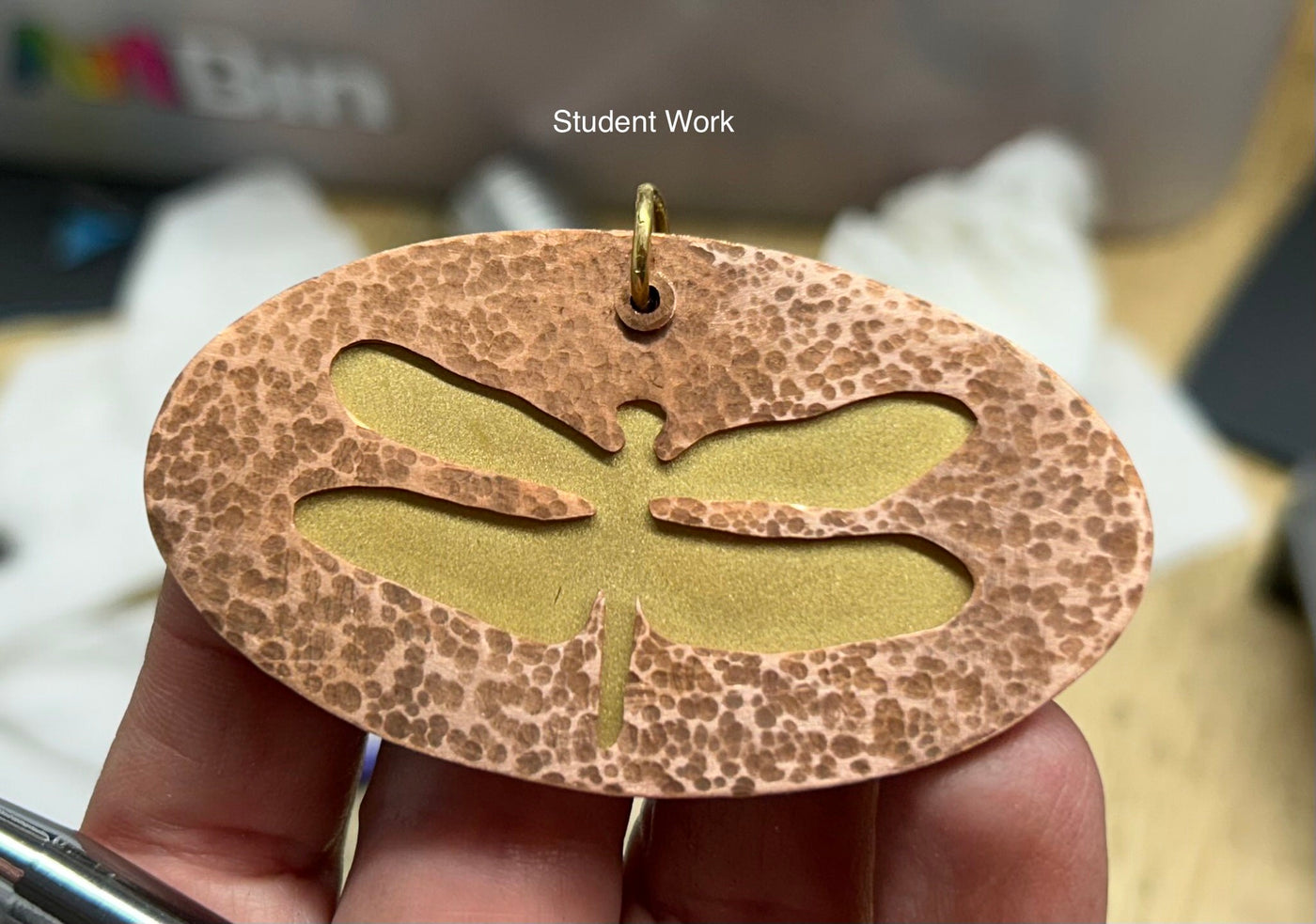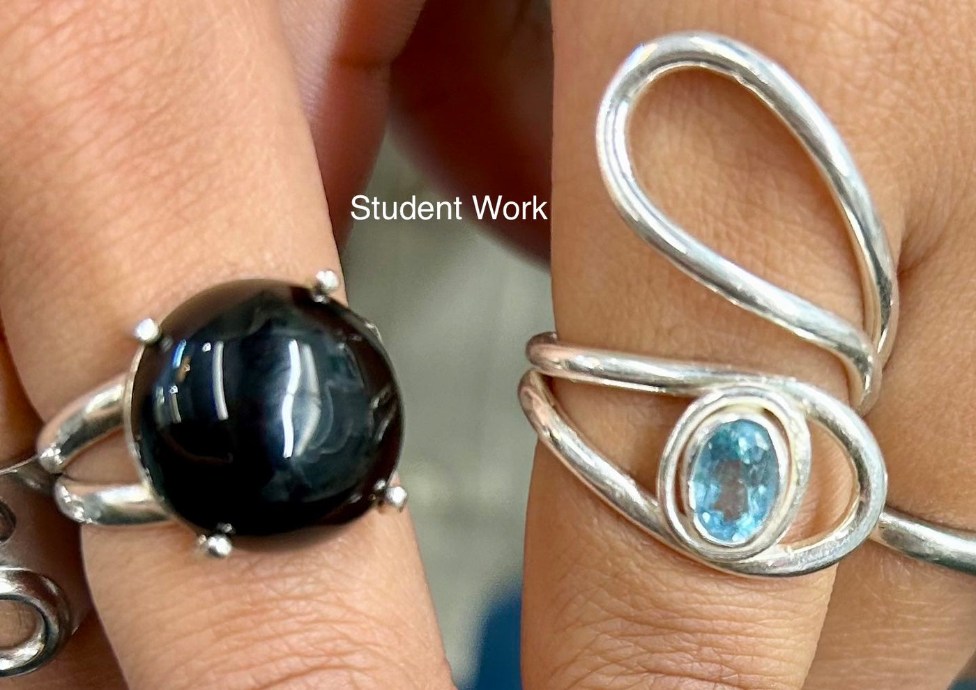 This class is designed for the beginning student. This is a fast paced, comprehensive, 8 week class. Class will start with the basics of sawing, piercing, filing and sanding. We will explore surface embellishment through stamping, roll printing, hammer texture, and more. Class will cover cold connections such as rivets and jump rings. Finally, we will dive into soldering. Students will learn how the soldering process works and will create a hand made bezel and learn how to set their stone. The skills that students learned earlier in the class will allow them to choose how to showcase their bezel set stone. We will explore rings, pendants, earrings and more!
